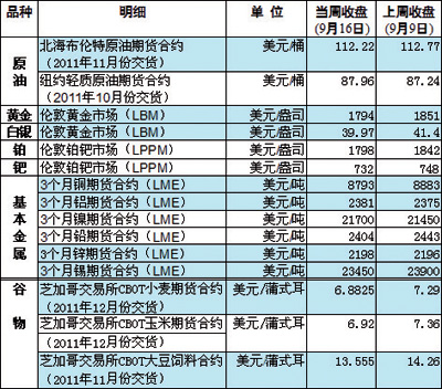 國(guó)際大宗商品期貨價(jià)格明細(xì)表[2011-09-19]