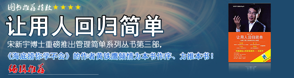 | 宋博士的書很不錯,與前兩本的風(fēng)格是一樣的,基本特點就是實用、可操作性強,說教的成分少,言簡意賅。非常好的書,對管理者很有裨益,強烈推薦! |