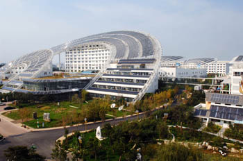 德州市太陽谷集中展示了以太陽能為主的多種節(jié)能技術相結合的節(jié)能建筑。記者 郭緒雷