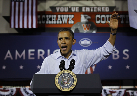 奧巴馬當(dāng)日表示,就業(yè)問(wèn)題是美國(guó)各地民眾最關(guān)心的議題之一,美國(guó)會(huì)應(yīng)當(dāng)盡快通過(guò)就業(yè)促進(jìn)法案,通過(guò)加大基礎(chǔ)設(shè)施投資等方式創(chuàng)造民眾迫切需要的就業(yè)崗位。奧巴馬17日開(kāi)始在北卡羅來(lái)納州和弗吉尼亞州進(jìn)行為期三天的巡回演講。
