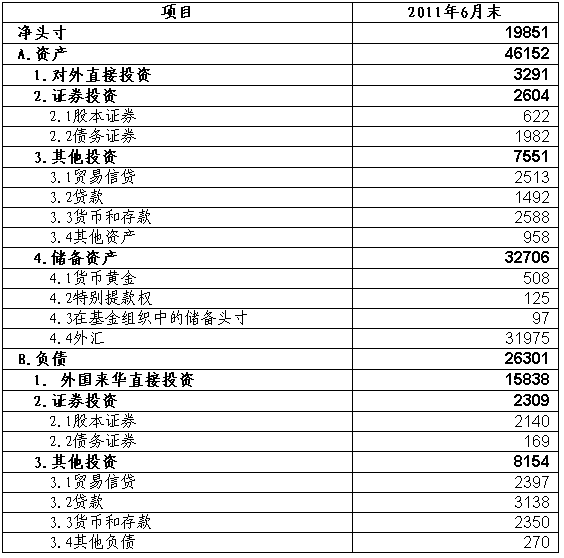 日前,國(guó)家外匯管理局公布了2011年6月末中國(guó)國(guó)際投資頭寸表。