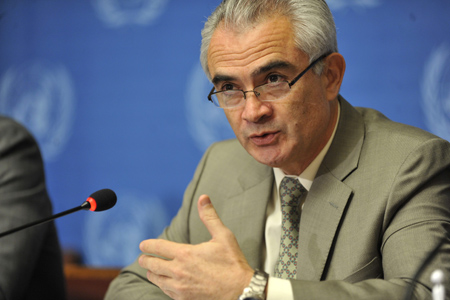 10月19日,在瑞士日內(nèi)瓦萬(wàn)國(guó)宮,國(guó)際勞工組織就業(yè)部執(zhí)行理事何塞·曼努埃爾·薩拉薩爾—希里納奇斯在新聞發(fā)布會(huì)上發(fā)言。 當(dāng)日,國(guó)際勞工組織召開發(fā)布會(huì),公布世界青年就業(yè)形勢(shì)最新情況,并指出日益嚴(yán)峻的就業(yè)形勢(shì)導(dǎo)致全球范圍內(nèi)的“恐懼”一代。