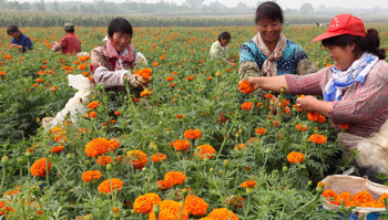 平泉花農(nóng)正在采摘萬(wàn)壽菊。 |