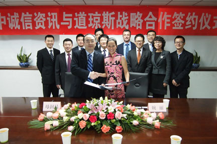 中誠信資訊與道瓊斯新聞社28日在北京金融街舉行戰(zhàn)略合作簽約儀式。中誠信資訊金融信息終端中將引入道瓊斯獨家債券實時資訊,雙方攜手為中國固定收益市場投資者提供權(quán)威的債券資訊與分析平臺。