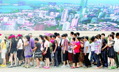 圖為在北京天安門廣場排隊參觀的人群(7月19日攝)。