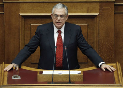 希臘聯(lián)合政府總理帕帕季莫斯16日晚贏得議會(huì)信任投票后,立即與國際金融協(xié)會(huì)理事長查爾斯·達(dá)拉雷就銀行業(yè)對希臘債務(wù)實(shí)行50%減記問題展開談判,以便落實(shí)歐元區(qū)領(lǐng)導(dǎo)人10月27日達(dá)成的新救援協(xié)議。