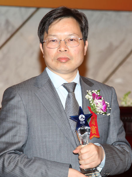 “2011綠色發(fā)展十大領軍人物、企業(yè)、城市”評選活動結束,頒獎典禮于2011年11月19日下午在人民大會堂舉行,上圖為浙江余姚市代表領獎。