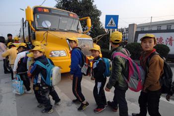 浙江德清縣學(xué)生成為“校車伴我上學(xué)路”的嘗鮮者。11月21日,育才學(xué)校的小學(xué)生們放學(xué)后排隊(duì)前往自己乘坐的校車。據(jù)了解,德清縣設(shè)立了每年400萬(wàn)的學(xué)生接送營(yíng)運(yùn)補(bǔ)貼專項(xiàng)資金,用于校車公司的運(yùn)行補(bǔ)貼,學(xué)生每人每次乘車只需支付一元錢,貧困學(xué)生免費(fèi)。記者