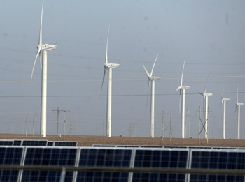 中節(jié)能甘肅玉門(mén)市昌馬20萬(wàn)千瓦風(fēng)電場(chǎng)建設(shè)的風(fēng)電和光伏電場(chǎng)新華社發(fā)(資料照片) |