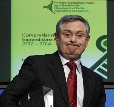 愛爾蘭公共支出與改革部長布倫丹·豪林5日在議會發(fā)表講話,公布了愛爾蘭明年削減22億歐元(約合30億美元)開支方案細節(jié)。豪林說,愛爾蘭政府明年在衛(wèi)生、社會保障、教育和農(nóng)業(yè)方面的經(jīng)常性支出將大幅削減。
