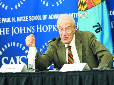 12月7日,在美國約翰斯·霍普金斯大學,諾貝爾經濟學獎獲得者羅伯特·索洛就歐債危機問題發(fā)言。 包括索洛在內的多位美國經濟學家當日表示,在歐債危機持續(xù)發(fā)酵之際,美國應當采取多種政策手段來構建經濟和金融“防火墻”,以減弱歐債危機對美國的沖擊。