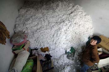 由于棉花價格太低,棉農(nóng)馬玉珍一斤棉花也沒有賣,都堆放在屋子里。記者 郭緒雷