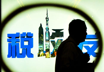 一名行人從上海街頭的稅收廣告牌旁走過。新華社發(fā)(井韋