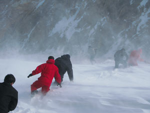 西部管道公司員工在西氣東輸二線果子溝段巡線時遭暴風(fēng)雪。