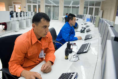 圖為土庫曼斯坦及中國員工在阿姆河天然氣公司控制中心進(jìn)行生產(chǎn)調(diào)度。