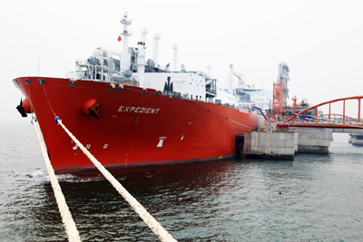 大連LNG接收站2011年11月23日完成首船接卸,實現(xiàn)試運投產(chǎn)一次成功。目前已接卸27.29萬立方米,氣化外輸總量7012萬立方米,通過東北管網(wǎng)緩解東北供氣壓力。