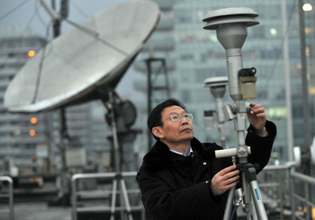 北京市環(huán)境保護(hù)監(jiān)測(cè)中心工作人員在查看PM2.5的監(jiān)測(cè)設(shè)備。記者 公磊