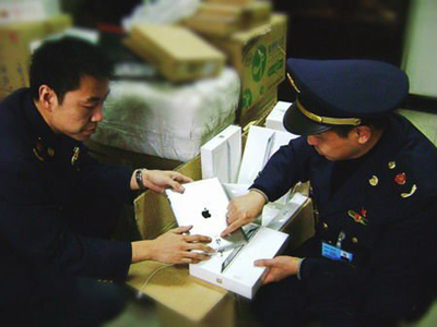 工商執(zhí)法人員清理被查扣的蘋果iPad 2