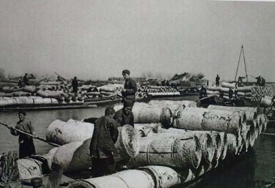 上世紀(jì)50年代勝芳河道上運葦席的船只。