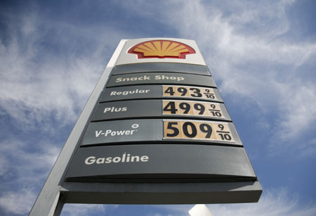 這是2月21日在美國洛杉磯一個(gè)加油站拍攝的油價(jià)顯示牌。