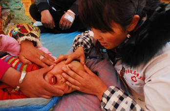 2月21日是藏歷新年的前一天,位于青海省海南藏族自治州貴南縣的過馬營(yíng)鎮(zhèn)中心醫(yī)院內(nèi),前來看病的藏族牧民都不會(huì)為看病花費(fèi)多少錢而擔(dān)心,因?yàn)樾滦娃r(nóng)村合作醫(yī)療為他們看病住院提供了必要的保障。據(jù)統(tǒng)計(jì),2011年貴南縣農(nóng)牧民參合達(dá)5.53萬人,參合率為99.4%,新農(nóng)合人均籌資標(biāo)準(zhǔn)也從164.3元提高到300元。圖為醫(yī)生準(zhǔn)備為一名患感冒的藏族兒童扎針輸液。新華社發(fā)