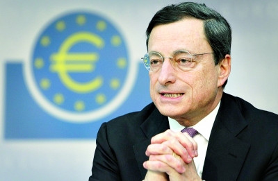 圖為歐洲央行行長德拉吉在會議后的新聞發(fā)布會上發(fā)言。