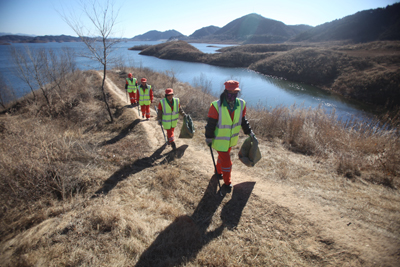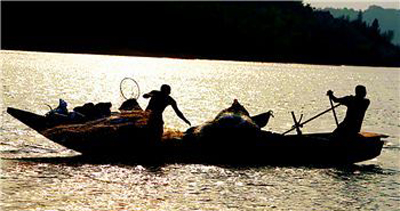 結(jié)束了半年之久的禁捕期,漁民們劃著小舟入庫張網(wǎng)捕魚。