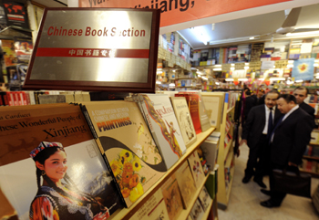 中國(guó)圖書(shū)伊斯蘭堡設(shè)專柜。2月16日,中國(guó)圖書(shū)在伊斯蘭堡設(shè)立專柜儀式在巴基斯坦最大的書(shū)店—薩義德書(shū)店舉行,吸引了當(dāng)?shù)厝罕娗皝?lái)瀏覽。記者 沈橋