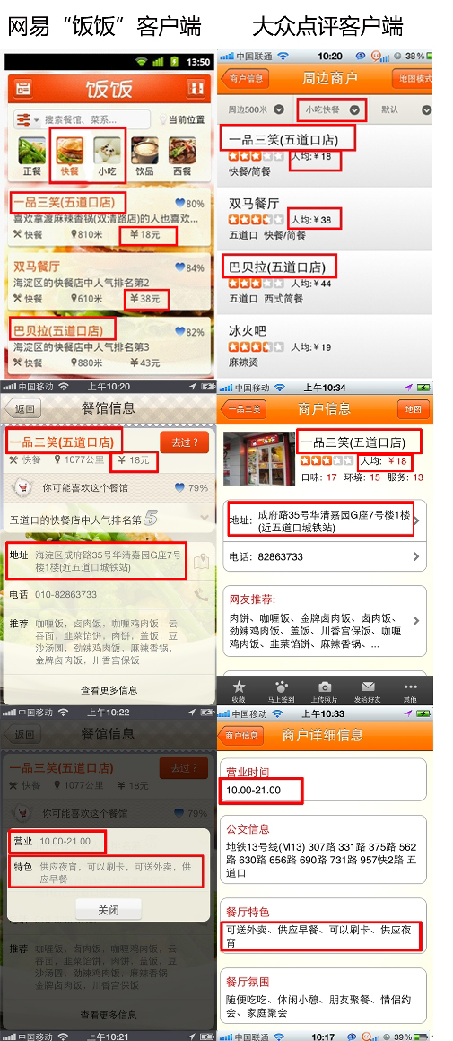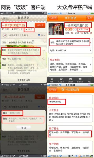 大眾點(diǎn)評(píng)與網(wǎng)易飯飯客戶(hù)端對(duì)比(圖片由大眾點(diǎn)評(píng)提供)