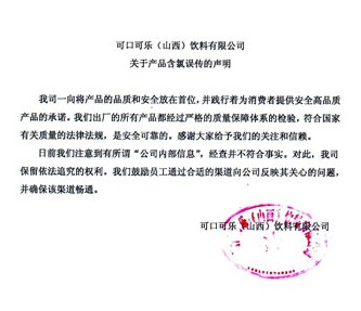 4月16日可口可樂針對媒體報道的聲明