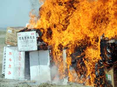 新疆日前在烏魯木齊市西山大浦溝垃圾場集中銷毀鉻超標膠囊劑藥品共計9個品種5萬多盒。據(jù)新疆食品藥品監(jiān)督管理局介紹,鉻超標藥用問題曝光后,新疆對全區(qū)范圍內(nèi)的藥品生產(chǎn)企業(yè)、醫(yī)療機構(gòu)制劑室、保健食品生產(chǎn)企業(yè)使用膠囊進行檢驗,查封國家食品藥品監(jiān)管局通報的9家生產(chǎn)企業(yè)23個批次鉻超標問題藥品中進入新疆區(qū)內(nèi)銷售的問題藥品。