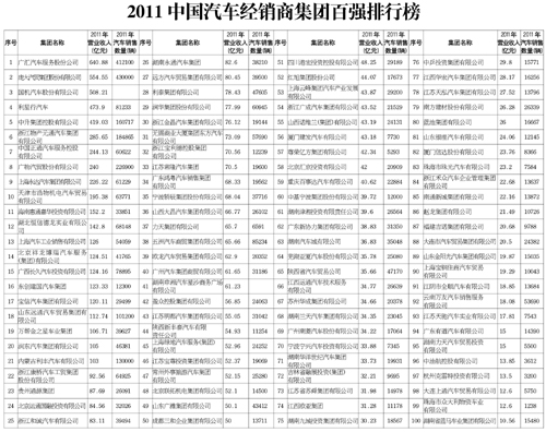 2011中國(guó)汽車流通行業(yè)百?gòu)?qiáng)榜發(fā)布