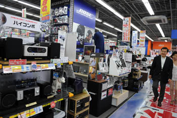 5月11日,日本家電連鎖巨頭比酷相機公司正式收購同行小島公司(KOJIMA)過半股權,兩家銷售額將達1萬億日元(約合800億人民幣),從而僅次于最大電器零售商山田電機,躍居日本家電零售第二位。圖為顧客在比酷相機(BIC CAMERA)東京永樂町店選購商品。記者