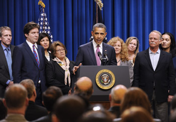 4月11日,在美國首都華盛頓白宮,美國總統(tǒng)奧巴馬就“巴菲特規(guī)則”發(fā)表講話。奧巴馬當(dāng)日說,年收入過百萬的富人繳稅稅率低于中產(chǎn)階級,這樣的現(xiàn)象完全不公平。記者