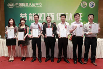 5月15日,中國(guó)質(zhì)量認(rèn)證中心頒發(fā)我國(guó)首批節(jié)能燈環(huán)保認(rèn)證證書。記者 任正來(lái)/攝 |