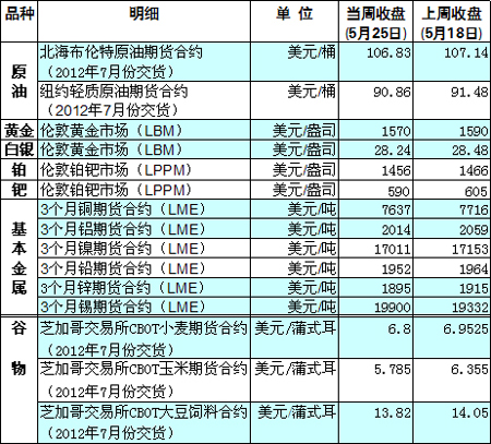 國際大宗商品期貨價格明細(xì)表[2012-05-28]
