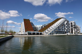 位于丹麥?zhǔn)锥几绫竟摹?字住宅”由丹麥建筑事務(wù)所BIG設(shè)計,整個大樓平面布局呈“8”字形,人們可騎車沿著露臺花園從街道一直上到10樓的頂層公寓。該建筑采用綠色屋頂,有助于保持室內(nèi)冬暖夏涼,在減少二氧化碳排放的同時也利于排水。建筑附近配有水景區(qū)、居民活動區(qū)、超市及小區(qū)幼兒園,為居民生活提供了便利,是北歐國家中典型的環(huán)境友好型建筑。圖為“8字住宅”外景。新華社發(fā)(吳波
