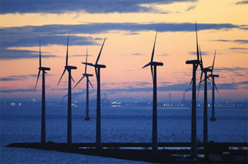 坐落在哥本哈根海港的米德爾格倫登風(fēng)電場是一座擁有20座2兆瓦風(fēng)力發(fā)電機(jī)、總裝機(jī)量為40兆瓦的海上風(fēng)電場,它們產(chǎn)生的電力可以為哥本哈根的4萬戶家庭提供電力。這個風(fēng)力發(fā)電場現(xiàn)在已成為哥本哈根的新地標(biāo)和城市新名片,每年都吸引數(shù)以十萬計的考察者和參觀者前來觀光取經(jīng)。