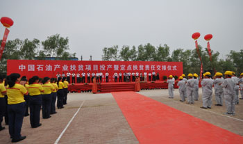 “中石油目前定點(diǎn)扶貧與對口支援涉及全國8個省區(qū)14個縣區(qū)。”中石油定點(diǎn)扶貧與對口支援領(lǐng)導(dǎo)小組副組長、總經(jīng)理助理李潤生在項目交接儀式上說,其中從2007年開始定點(diǎn)扶貧河南兩縣——臺前縣和范縣。幾年來,中石油把改善群眾基本生產(chǎn)生活條件作為扶貧工作著力點(diǎn),累計投入3000萬元,援建了中醫(yī)院、技能培訓(xùn)中心、中心小學(xué)、通村道路、飲水工程等10個民生工程。