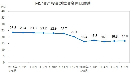 2012年1-6月份,全國固定資產(chǎn)投資(不含農(nóng)戶)150710億元,同比增長20.4%(扣除價格因素實際增長18.0%),增速較1-5月份提高0.3個百分點。從環(huán)比看,6月份固定資產(chǎn)投資(不含農(nóng)戶)增長1.71%。