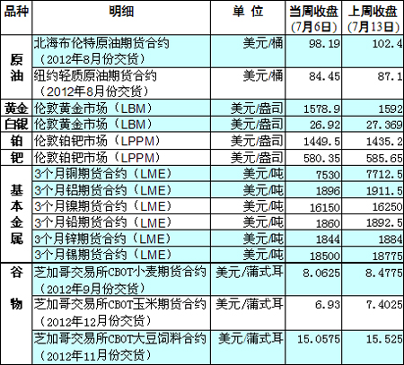 國(guó)際大宗商品期貨價(jià)格明細(xì)表[2012-07-16]