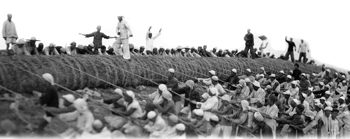 1958年11月15日,根據(jù)“五七”規(guī)劃,總干渠土方工程開工,巴彥淖爾盟(時稱,現(xiàn)巴彥淖爾市)2.3萬勞動大軍開到了總干渠的工地現(xiàn)場,開始了總干渠土方工程的施工。當時的民工在幾乎沒有任何機械作業(yè)的情況下,黨員干部帶頭大干苦干,領導群眾齊上陣,靠著人挖肩挑10年時間,終于開挖出了總長230公里的總干渠。從此,河套灌區(qū)結束了自流引水的歷史,被群眾稱為“二黃河”的總干渠從此開始惠及世世代代的河套人民。前輩們不僅完成了一次歷史性壯舉,更給后人留下了一種精神——“總干”精神。