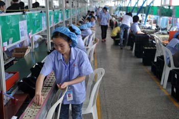 工人在位于廣西北海市的一家電子科技公司車間忙碌。新華社記者