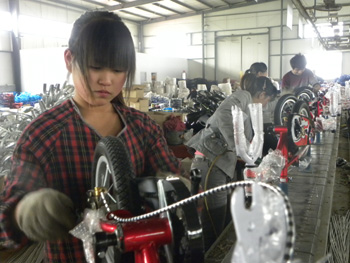 廣宗縣一家童車公司忙碌的生產(chǎn)線。記者 曹國(guó)廠