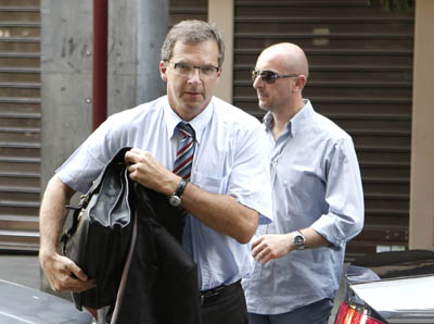 國際貨幣基金組織(IMF)和歐洲央行的觀察員5日表示,已完成對希臘的訪問,并對救助進程進行了檢查和監(jiān)管。此前,歐盟、歐洲央行以及IMF官員來到雅典,與希臘財長商討未來兩年的115億歐元計劃。據(jù)悉,“三駕馬車”還將在九月份再來希臘商討下一步措施。圖為歐洲央行代表克洛斯馬薩奇(Klaus Masuch)5日參加在希臘財政部舉行的會議。
