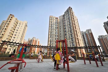 圖為市民在天津市首批公租房項(xiàng)目——秋麗家園內(nèi)乘涼游玩。記者岳月偉/攝 |