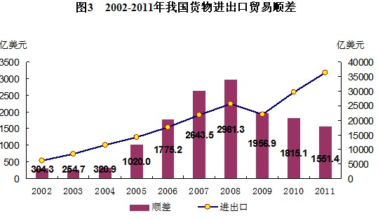 9.5個(gè)百分點(diǎn)?傮w上看,近年來我國進(jìn)出口不平衡狀況逐步改善,2009-2011年,貿(mào)易順差比上年分別減少1024億美元、142億美元和264億美元。