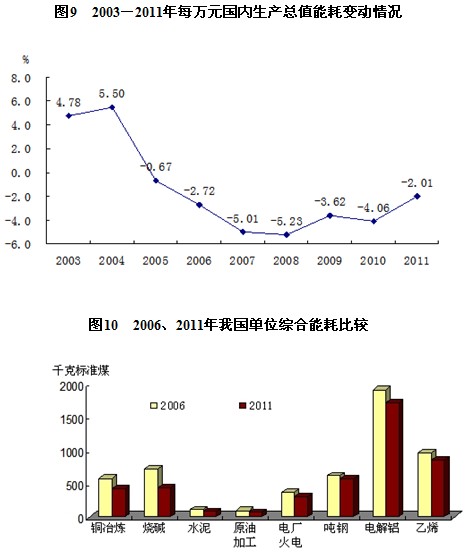 黨的十六大以來,建設(shè)資源節(jié)約型、環(huán)境友好型社會(huì)成為加快轉(zhuǎn)變經(jīng)濟(jì)發(fā)展方式、調(diào)整經(jīng)濟(jì)結(jié)構(gòu)的重要著力點(diǎn),節(jié)能減排、生態(tài)建設(shè)和環(huán)境保護(hù)力度明顯加大!笆晃濉币(guī)劃綱要第一次把節(jié)能減排列為約束性指標(biāo),經(jīng)濟(jì)可持續(xù)發(fā)展能力不斷增強(qiáng)。單位國內(nèi)生產(chǎn)總值能耗大幅下降。隨著國家和各地區(qū)節(jié)能降耗工作力度的不斷加大,各項(xiàng)政策措施逐步深入落實(shí),節(jié)能降耗取得明顯成效。2011年,單位國內(nèi)生產(chǎn)總值能耗比2002年下降12.9%。2011年,單位銅冶煉綜合能耗比2006年下降28.3%,燒堿生產(chǎn)綜合能耗下降38.8%,水泥綜合能耗下降26.8%,原油加工單位綜合能耗下降25.3%,電廠火力發(fā)電標(biāo)準(zhǔn)煤耗下降16.1%,鋼綜合能耗下降6.6%,電解鋁綜合能耗下降10.1%,乙烯生產(chǎn)綜合能耗下降11.0%。高耗能行業(yè)發(fā)展得到抑制,部分落后產(chǎn)能逐步淘汰。為抑制高耗能行業(yè)盲目擴(kuò)張,黨的十六大以來,我國對高耗能行業(yè)中淘汰類、限制類企業(yè)實(shí)行差別電價(jià),并不斷提高加價(jià)標(biāo)準(zhǔn)。出臺支持節(jié)能的稅收優(yōu)惠政策,對貸款實(shí)行差別定價(jià),嚴(yán)控對高耗能、高污染企業(yè)的信貸投入,加大對環(huán)保企業(yè)和項(xiàng)目的信貸支持,改善環(huán)保領(lǐng)域的直接融資服務(wù),大幅增加對節(jié)能減排的投入。六大高耗能行業(yè)增長明顯減緩。2005-2011年,規(guī)模以上工業(yè)中,六大高耗能行業(yè)工業(yè)增加值平均增長14.5%,低于規(guī)模以上工業(yè)增加值平均增速0.5個(gè)百分點(diǎn)。污染物排放總量得到控制,環(huán)境質(zhì)量持續(xù)改善。2010年,化學(xué)需氧量和二氧化硫排放量比2005年分別下降12.45%和14.29%。2011年末,城市污水處理廠日處理能力達(dá)11255萬立方米,比2002年末增長2.1倍;城市污水處理率達(dá)到82.6%,提高42.6個(gè)百分點(diǎn)。2011年,七大水系的水質(zhì)監(jiān)測斷面中,Ⅰ~Ⅲ類水質(zhì)斷面比例占56.3%,比2005年提高15.3個(gè)百分點(diǎn)。在監(jiān)測城市中空氣質(zhì)量達(dá)到二級以上(含二級)標(biāo)準(zhǔn)的城市占監(jiān)測城市數(shù)的88.8%,比2005年提高28.7個(gè)百分點(diǎn)。