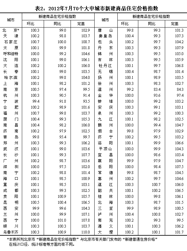 2、現(xiàn)行《住宅銷售價格統(tǒng)計調(diào)查方案》自2011年1月起開始實施,2011年10月70個大中城市全部報送了網(wǎng)簽數(shù)據(jù)。由于各個城市報送網(wǎng)簽數(shù)據(jù)的初始時間不同步,因此2012年10月前,部分城市的數(shù)據(jù)與以往歷史數(shù)據(jù)不完全可比。