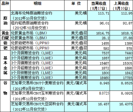 國際大宗商品期貨價格明細(xì)表[2012-08-20]